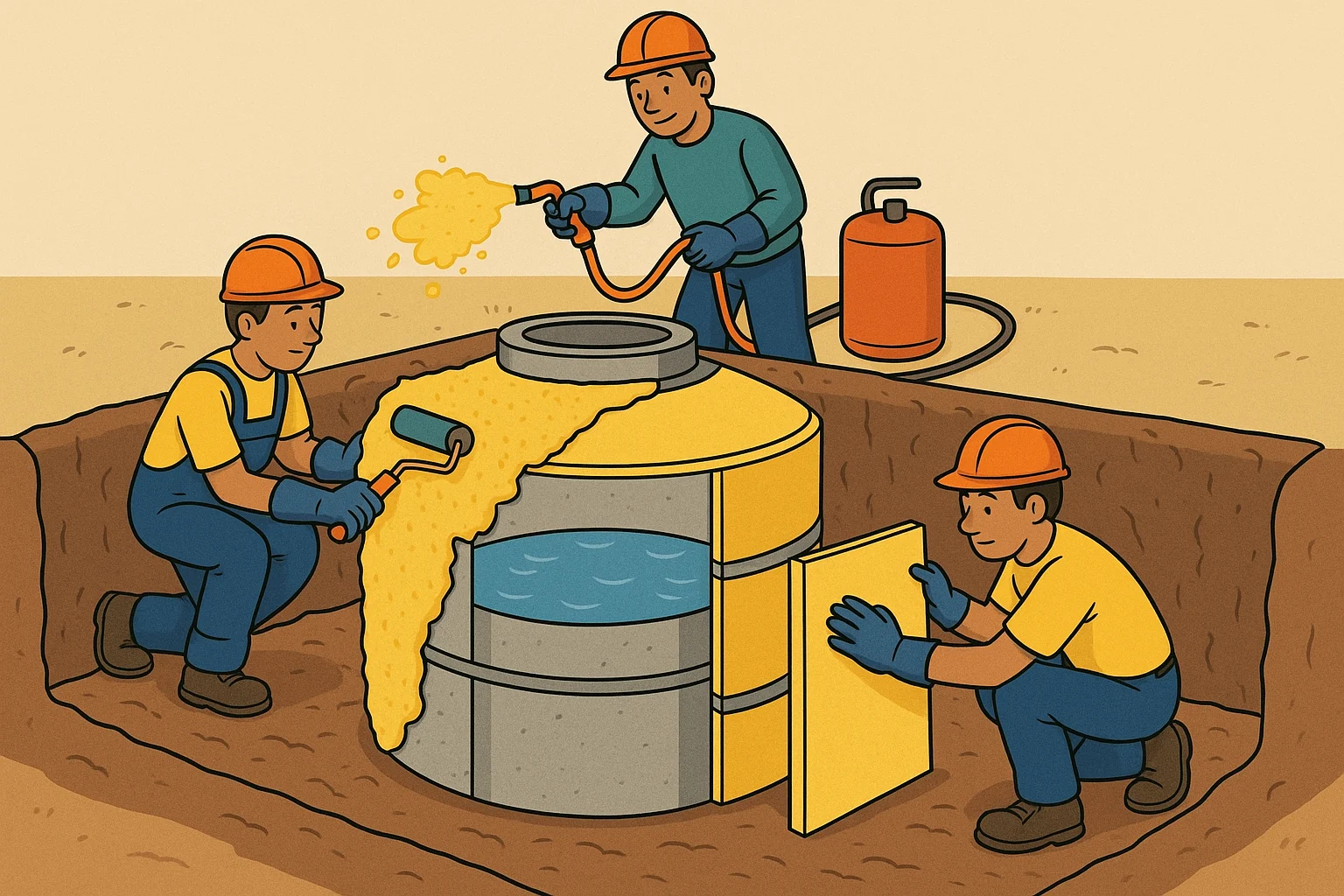 لحماية خزانك من التسربات باستخدام مواد قوية مثل الايبوكسي والبيتومين**. - العزل الحراري للخزانات